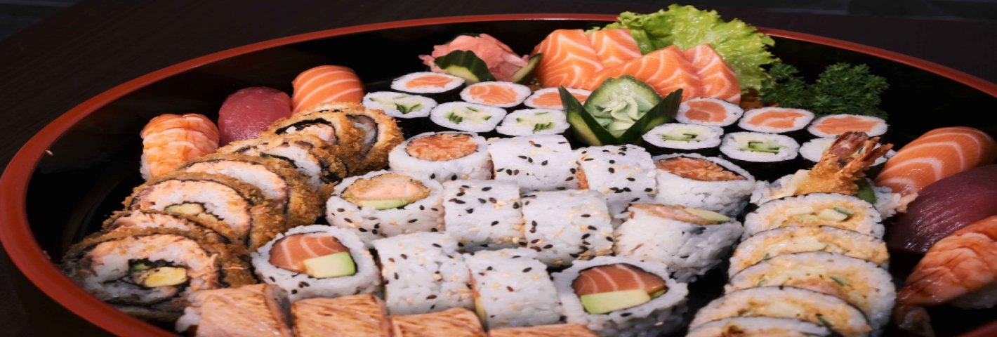 Sushi & sashimi 1 persoon (33 stuks)6 sashimi, 3 nigiri, 8 hosomaki, 8 in/out, 4 futo maki, 4 fried roll